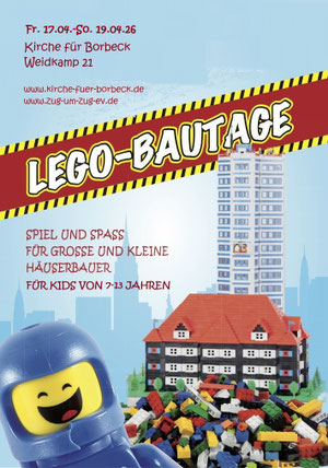 Wer durch die vielen Plastikteile schnell „eckige Augen“ bekommt, kann sich am tollen Rahmenprogramm erfreuen: fetzige Lieder, spannende Geschichten und knackige Spiele sorgen dafür, dass alle auf ihre Kosten kommen. Die festliche Einweihung der LEGO®-Stadt findet dann am Sonntag im Rahmen eines Familiengottesdienstes statt. Eingeladen sind Eltern, Kinder und alle, die eine außergewöhnliche Stadt im Miniformat ansehen wollen.